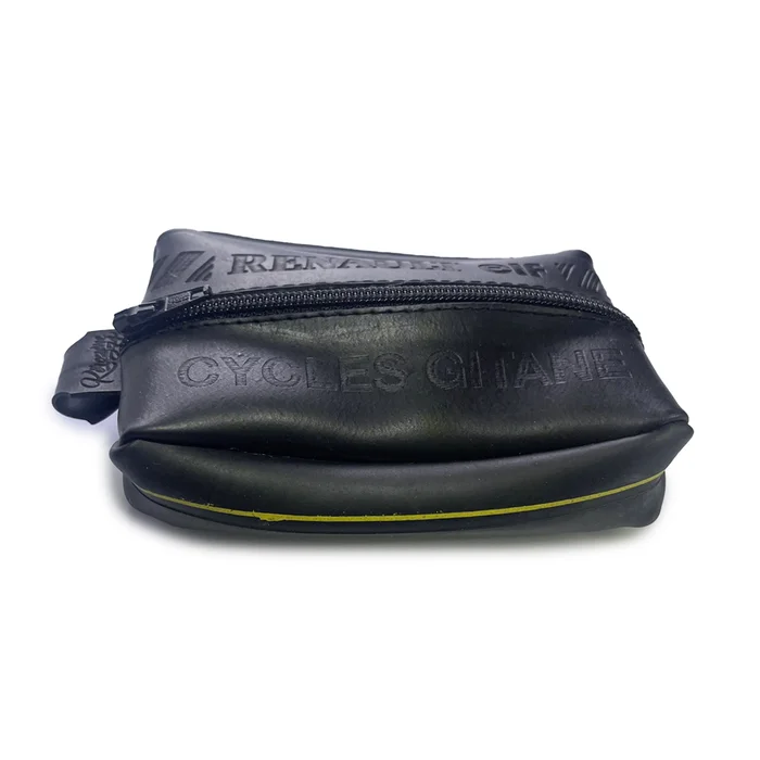 Le porte-monnaie Nénette Renault-Elf est un clin d’œil vintage à l’univers des grandes équipes et des passionnés. Conçu en chambre à air upcyclée, il mise sur un format compact, facile à vivre, avec cette texture unique que seule une matière qui a déjà roulé peut offrir.
